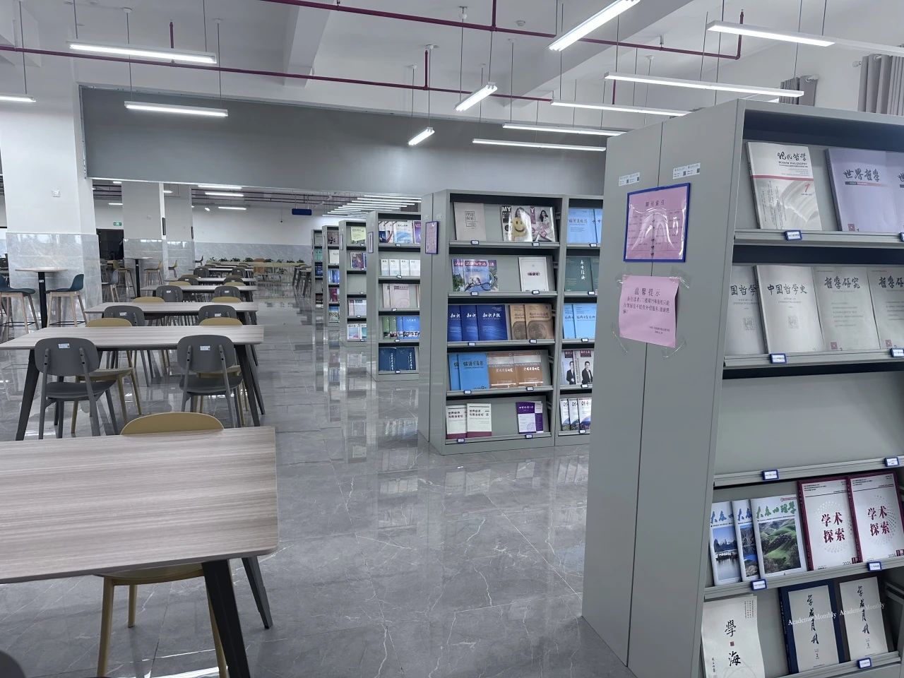 设施设备:馆内配备了沙发、阅览桌椅、电子书借阅机、朗读亭、直饮水设备和检索电脑等,为读者提供舒适的学习环境。馆藏检索报刊阅读一体机、图书自助借还机等智能化设备设施,便捷读者检索、查询文献资源、借阅图书。图书馆Wifi全覆盖。