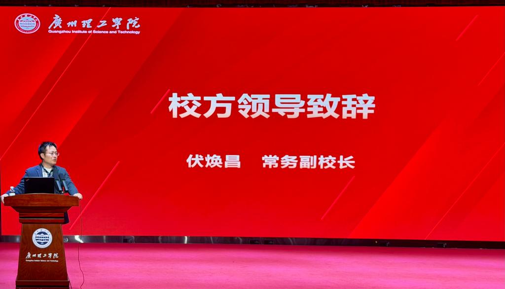 常务副校长伏焕昌发表致辞,他强调,产教融合是高等教育改革发展的必由之路,也是培养高素质应用型人才的关键举措。广州理工学院始终坚持以立德树人为根本,以服务区域经济社会发展为导向,此次与广东智动未来科技有限公司携手共建科产教融合基地,是学校深化教育教学改革、破解人才培养与产业需求脱节难题的重要实践。未来,学校将以基地为依托,充分整合校企双方优质资源,在人才培养、科研创新、实训就业等方面开展深度合作,为智能机器人产业高质量发展输送更多复合型、创新型人才。