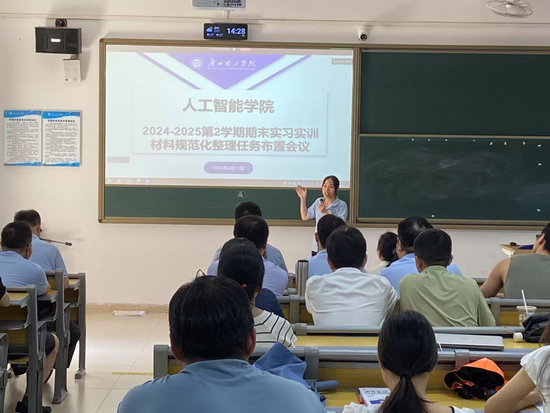 为进一步强化实践教学管理,提升实习实训教学质量,确保2024-2025学年第2学期实习实训材料的完整性、规范性与准确性,6月13日下午,人工智能学院在6-103组织召开期末实习实训材料规范化整理任务布置会议,会议由王煜林院长主持,白云校区和惠州校区全体员工参加。