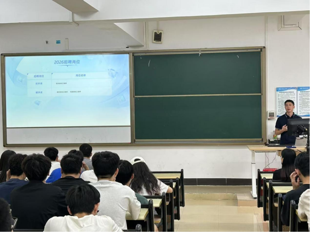 视源股份为我校校企合作单位,该公司专注于人机交互智能应用领域,产品服务覆盖人工智能、互联网、智能物联等多个前沿领域。此次招聘面向2026年毕业的学生,现场提供12个实习岗位,专业涵盖电子、电气、计算机、自动化、通信相关专业。招聘经理张家喜从公司产业分布、薪资福利、公司理念等多个角度详细进行了讲解。
