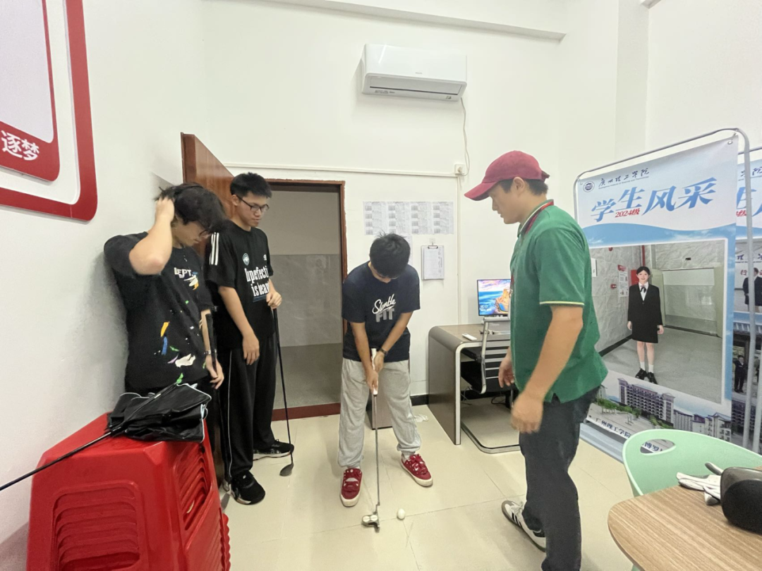 5月9日下午,我院在惠州校区宿舍3栋和4栋的社区活动中心精心策划了第十周社区活动。此次活动吸引我院十名怀揣着对高尔夫运动好奇与渴望的同学踊跃参与,同时,我院惠州校区陈朝阳老师亲临现场,向同学们讲解高尔夫相关知识。