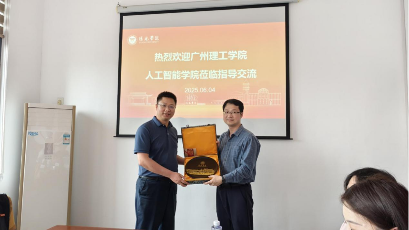 2025 年 6 月 4 日,广州理工学院人工智能学院院长王煜林率副院长江宇闻、钟桂凤,办公室主任庞晓晓,辅导员方书靓一行五人前往阳光学院,就学科建设、人才培养、产教融合等方面开展深度交流调研。阳光学院人工智能学院常务副院长黄风华、信息工程学院院长罗成立等相关负责人热情接待并参与座谈。