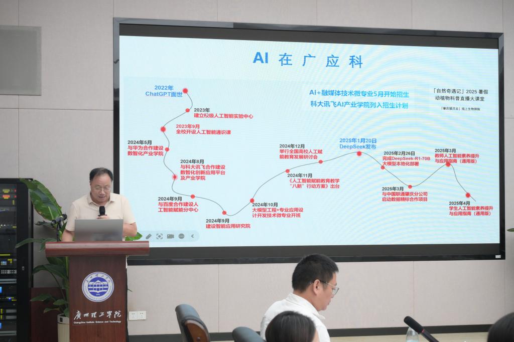 (庞晓晓)6月26日,中国民办教育协会“人工智能赋能教育情况”专题调研座谈会民办高校专场在广州理工学院工程楼一楼会议室顺利召开。中国民办教育协会调研组成员、广东省民办教育协会领导、广东省民办高校代表等41位代表参会,广东民办教育协会秘书长朱祖胜主持会议,本次会议聚焦民办高等教育人工智能实施进展,汇聚行业力量共探发展路径。