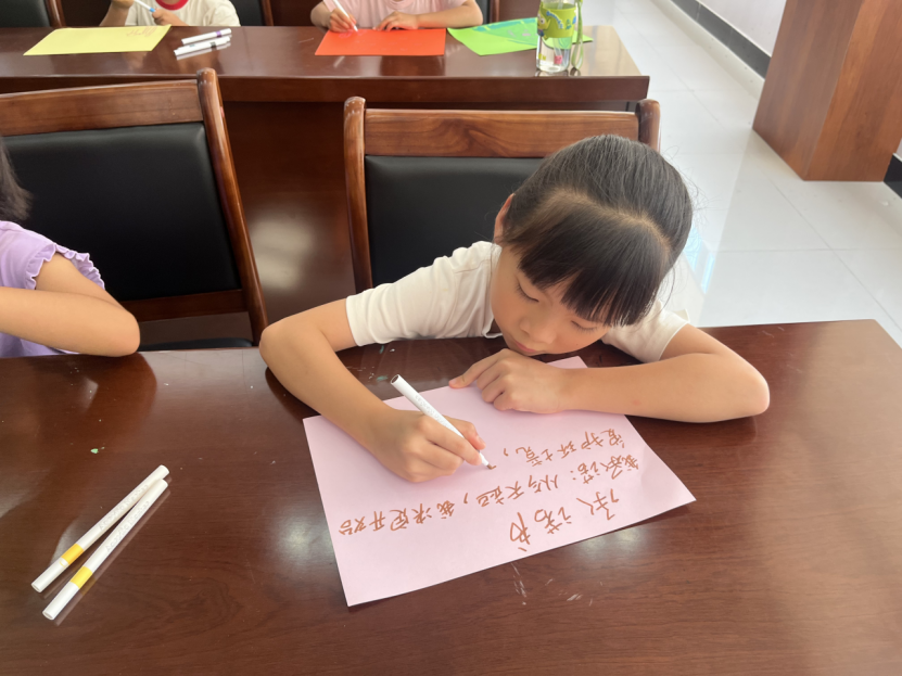 科技探索之旅的最后一站,指向了人类共同的未来——地球家园。第八节课,队长梁广以“AI环保卫士”为主题,为孩子们揭开了人工智能在守护绿水青山中的强大力量。并且为孩子们开展了一场别开生面的环保承诺仪式。每个小朋友都认真地在绿叶形状的卡片上写下自己的环保誓言:“我要做节约用水小卫士”“每周都要垃圾分类”“爱护花草不采摘”。稚嫩的笔迹里,满是对地球母亲的纯真承诺。