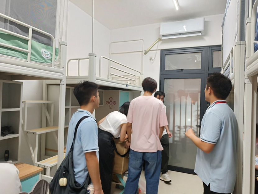 为帮助新生尽快适应校园新环境,辅导员老师们逐一走访新生宿舍。交流中,老师们既亲切询问大家的入学适应情况与实际需求,又细致叮嘱在校期间的安全、作息等注意事项;同时,还特意为即将参加军训考核的同学们加油鼓劲,预祝大家展现顽强拼搏精神,在考核中取得优异成绩。
