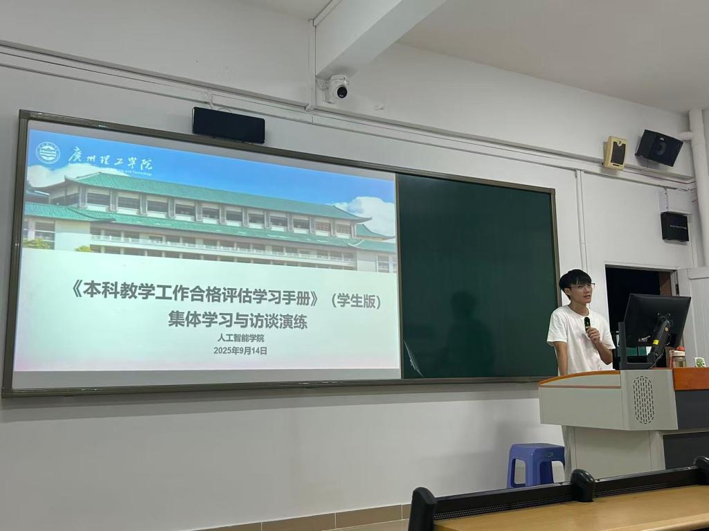 9 月 14 日晚,人工智能学院各班级同步召开《本科合格评估学习手册》(学生版)集体学习与访谈演练主题班会,围绕本科合格评估核心内容开展深度学习,强化评估认知与应对能力。