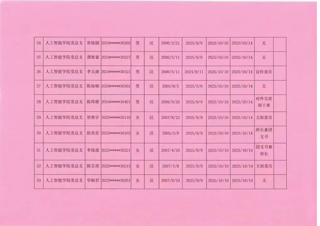 根据关于发展党员工作的相关要求,为了提升发展党员工作的透明度,加强群众监督效能,保证党员发展工作的严谨性和质量,同时让党员和群众对入党积极分子的基本状况有所了解,并对其进行有效监督,现将入党积极分子的具体情况予以公示如下。