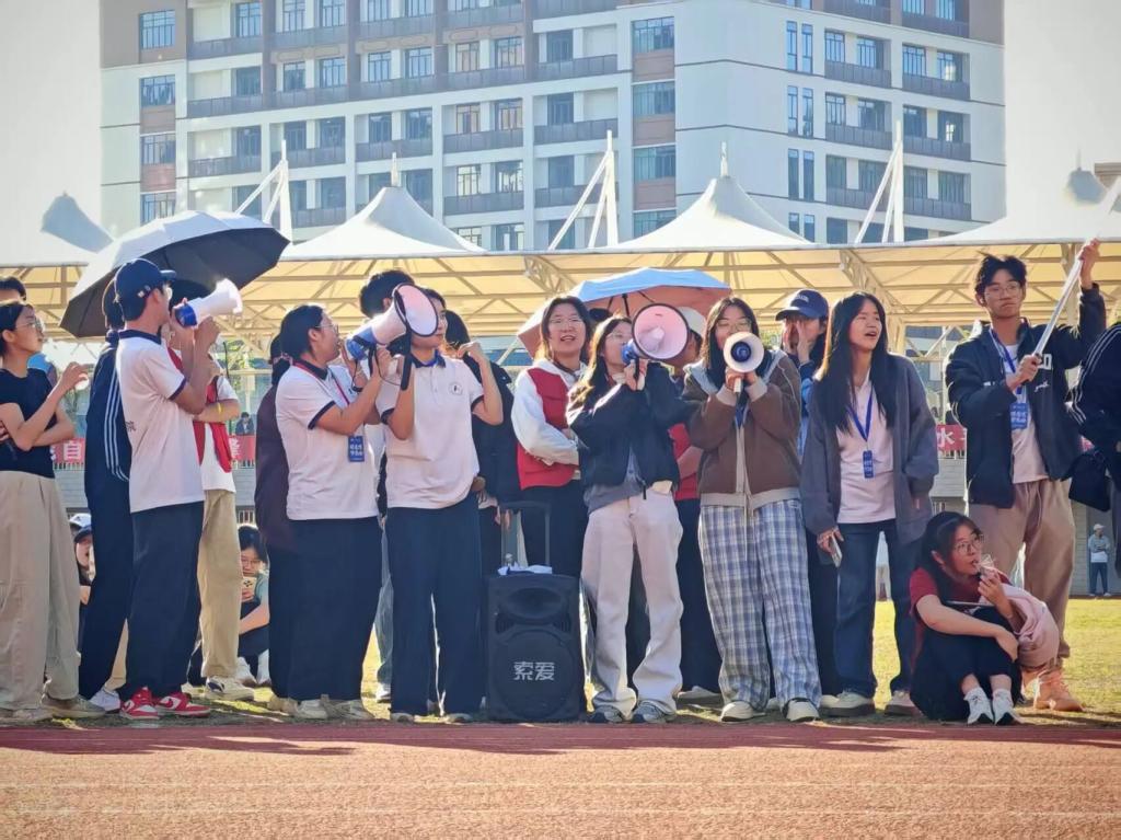 在热闹至极的赛场上,我院工作人员组成的拉拉队成为一道靓丽的风景线。他们挥舞着旗帜,高声呐喊,不仅用热情为运动员们注入无限力量,也展现了人工智能学院团结一致、积极向上的精神风貌。