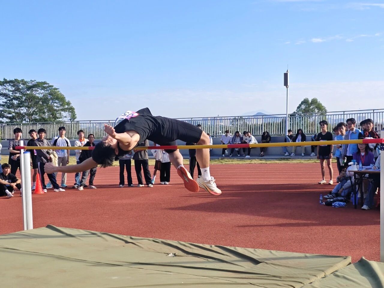 助跑如飞,起跳腾空,背越横杆,男子跳高冠军动作一气呵成。平日苦练不辍,终成赛场飞跃。助跑的步伐越踏越沉,起跳刹 那双腿猛地蹬地,背弓像拉满的弓弦将身体送过横杆——杆未晃、影已落,他落地时撑着软垫扬起头,这一跃直接把冠军稳稳攥在了手里。