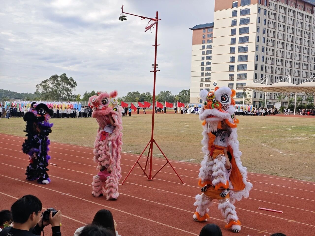 醒狮表演为校运会注入传统文化活力,以昂扬姿态助兴盛会,既彰显团结奋进的精神,也为运动健儿鼓劲助威,添彩赛场、凝聚人心。