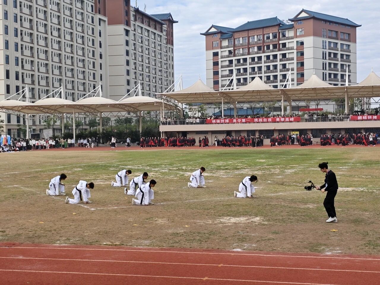 跆拳道,是青春活力与武道精神的双向奔赴。我校学生用刚劲腿法呼应校园朝气,利落招式彰显少年意气,既以“礼义廉耻”传递正向价值观,又用昂扬姿态点燃开场氛围,成为凝聚师生情感、展现校园风采的鲜活注脚。