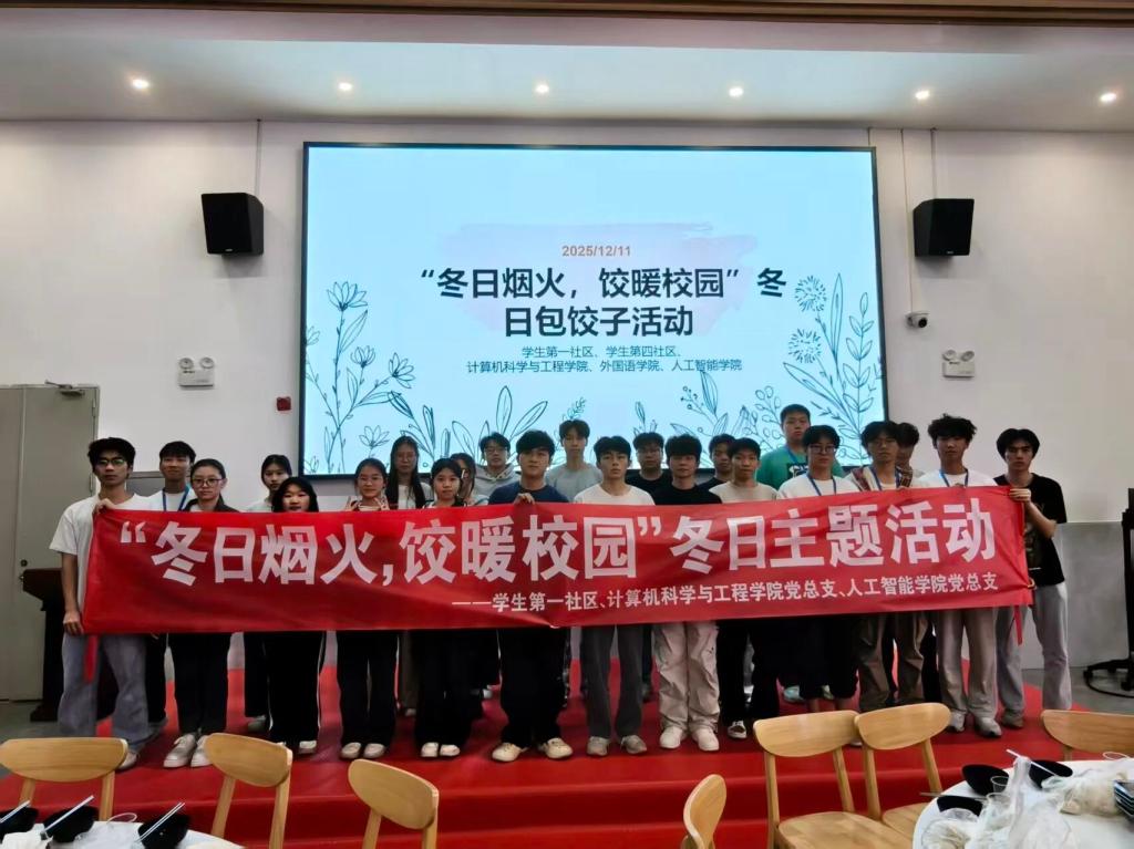 12月11日下午,人工智能学院党总支、计算机科学与工程学院党总支及学生第一社区,在第五食堂三楼联合举办了一场以“冬日烟火,饺暖校园”为主题的活动。近百名学生亲手体验了包饺子的乐趣,他们通过揉、捏、折、卷等技法实践,将劳动教育、美育熏陶与传统文化传承深度融合。