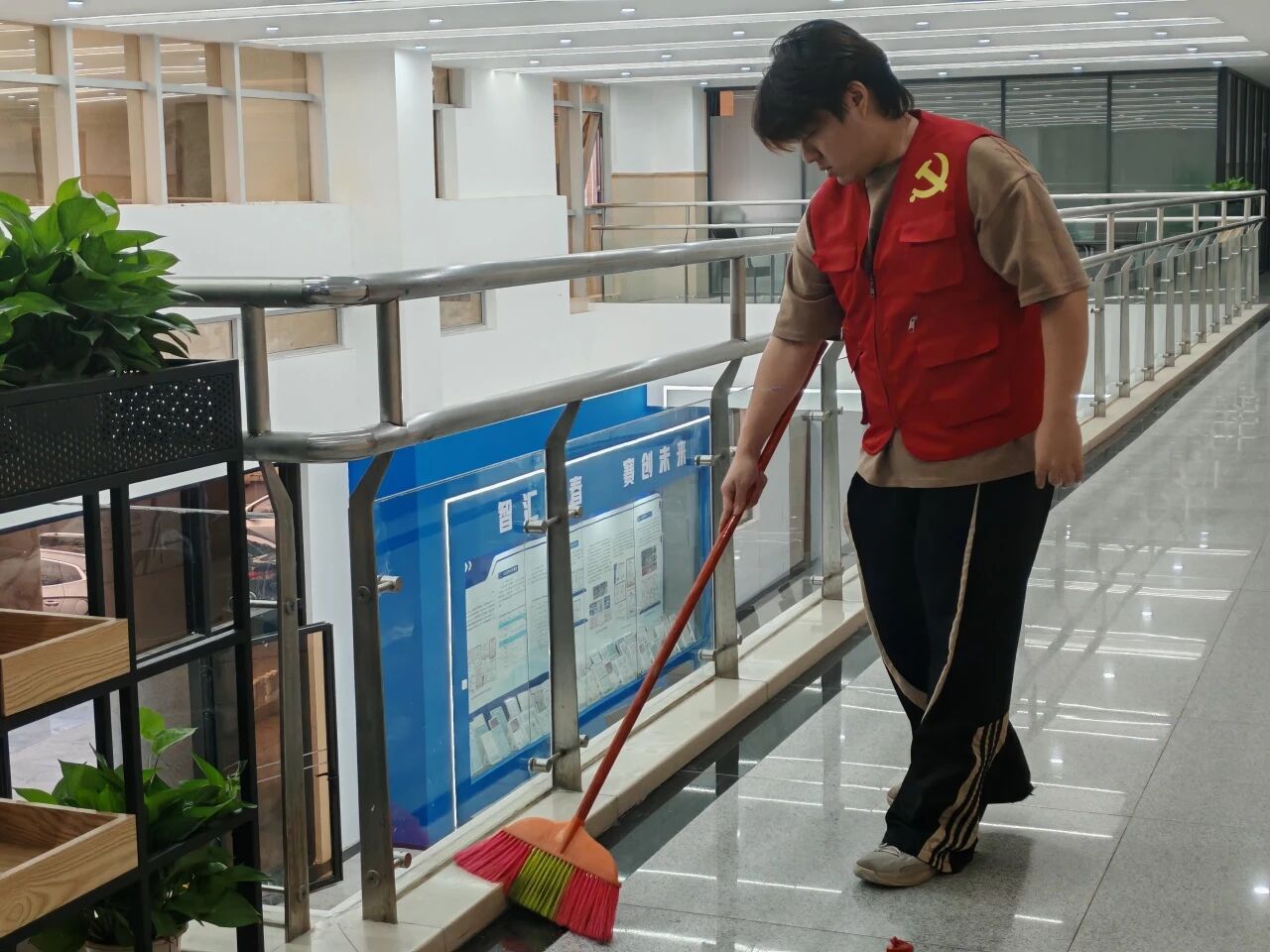 清洁过程中,志愿者们展现出认真负责的担当精神。经过协作清扫,各楼层走廊环境焕然一新,无明显杂物与积尘残留。