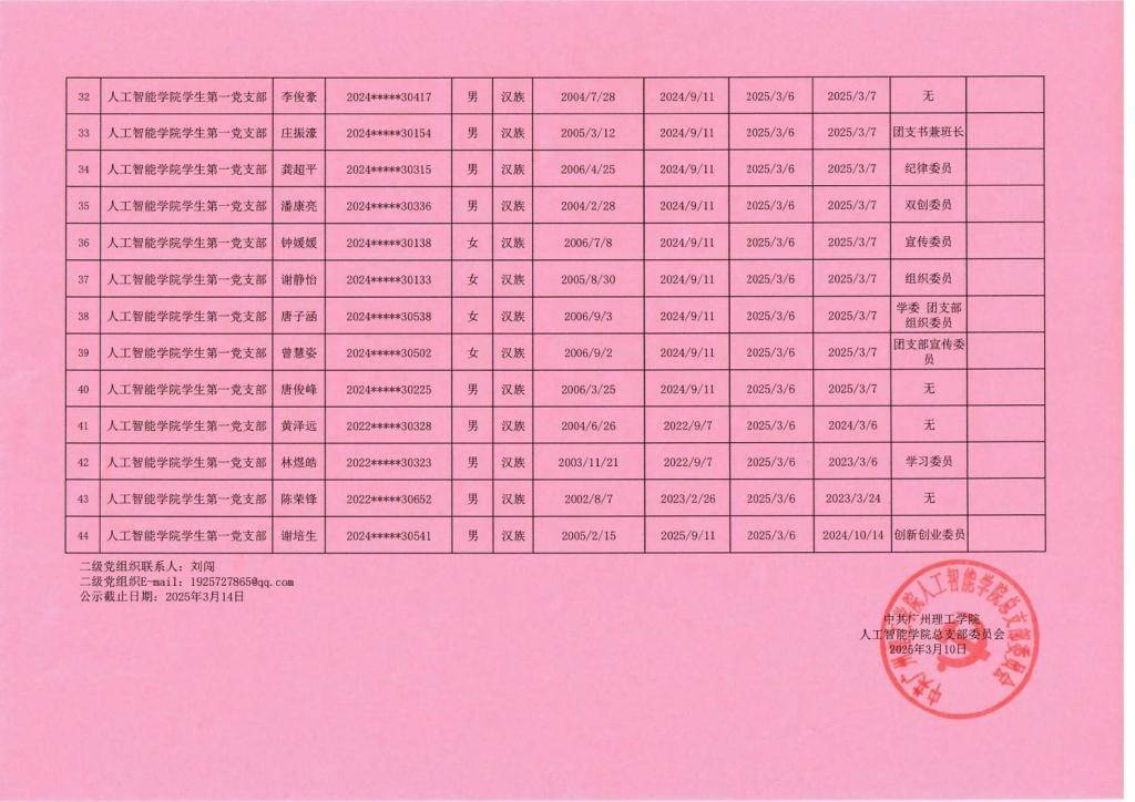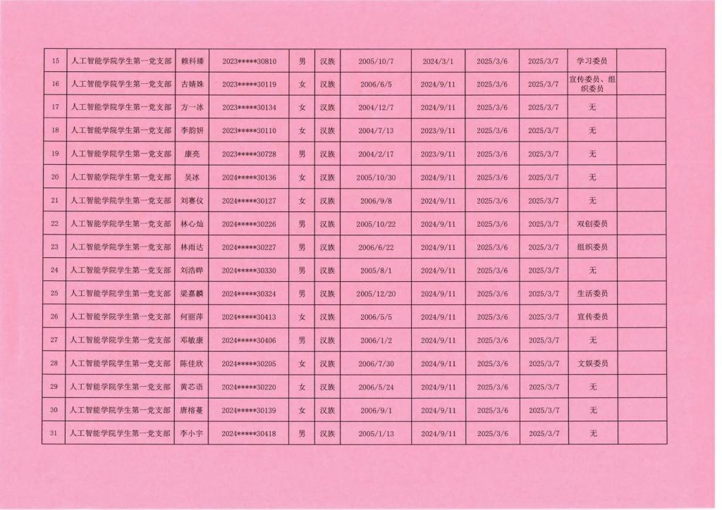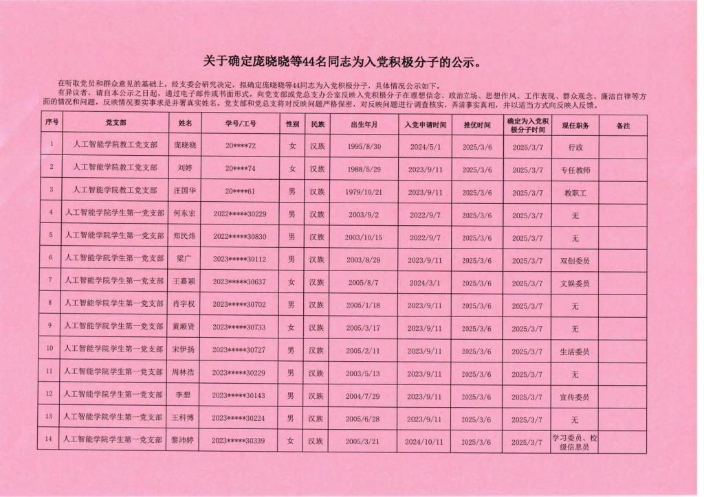 人工智能学院2025-1期入党积极分子公示