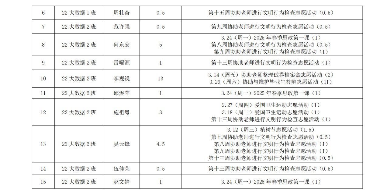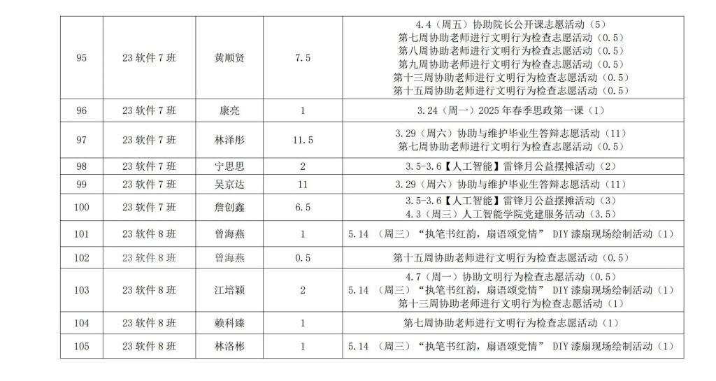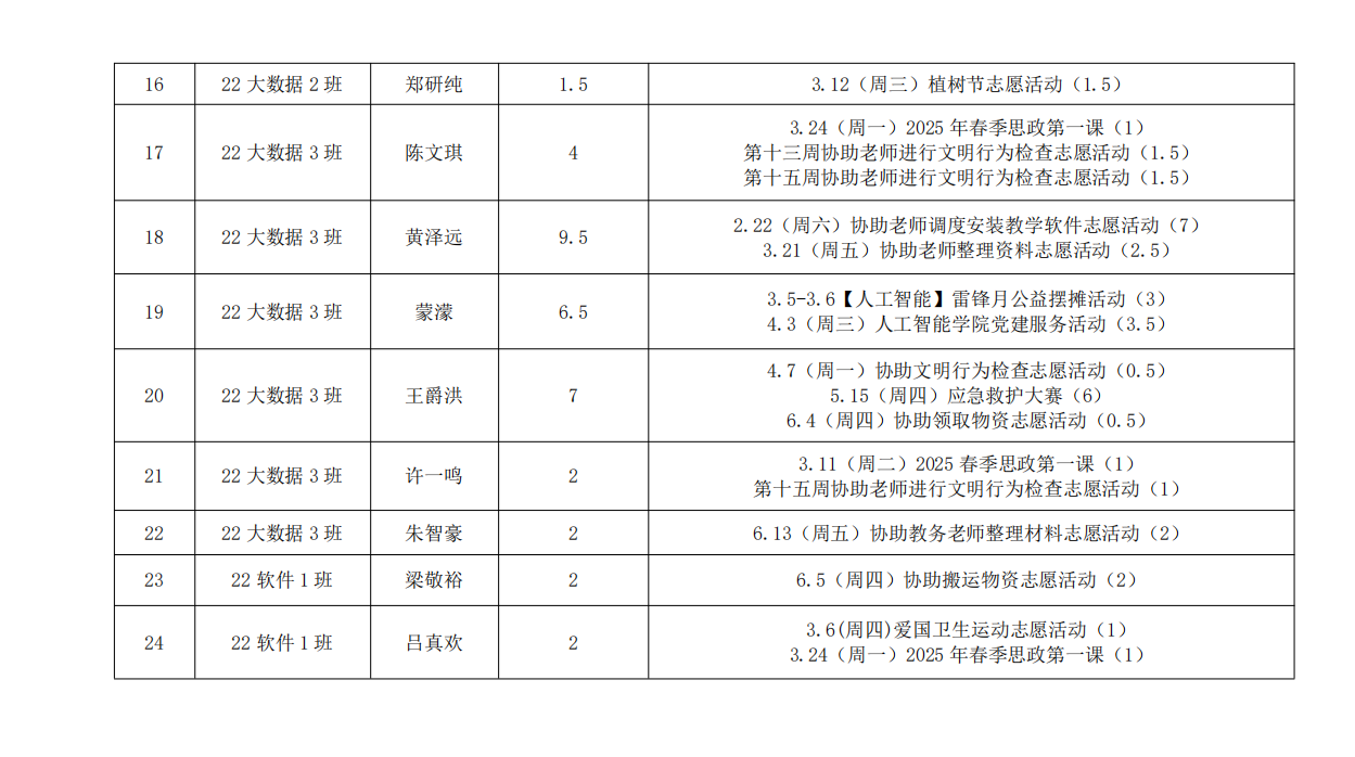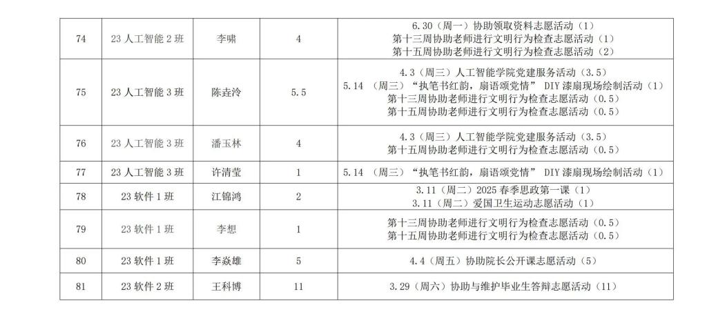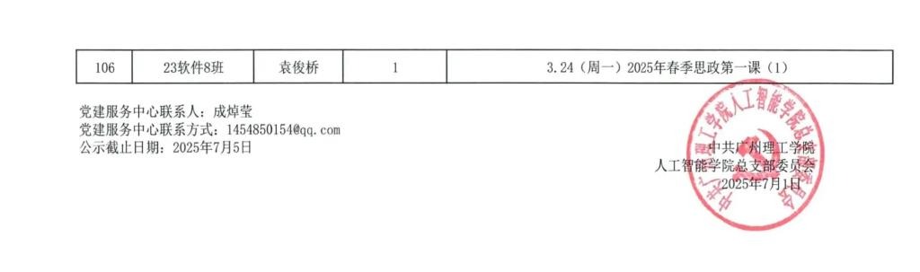 在听取培养联系人、党员和群众意见的基础上,经支委会研究决定,对人工智能学院各个发展阶段的同志进行2024-2025学年第二学期党建服务时公示,具体情况公示如下。