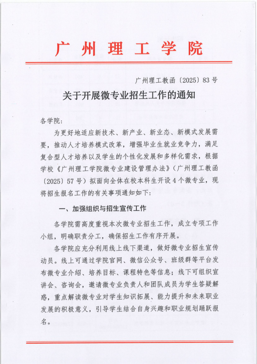 关于开展微专业招生工作的通知