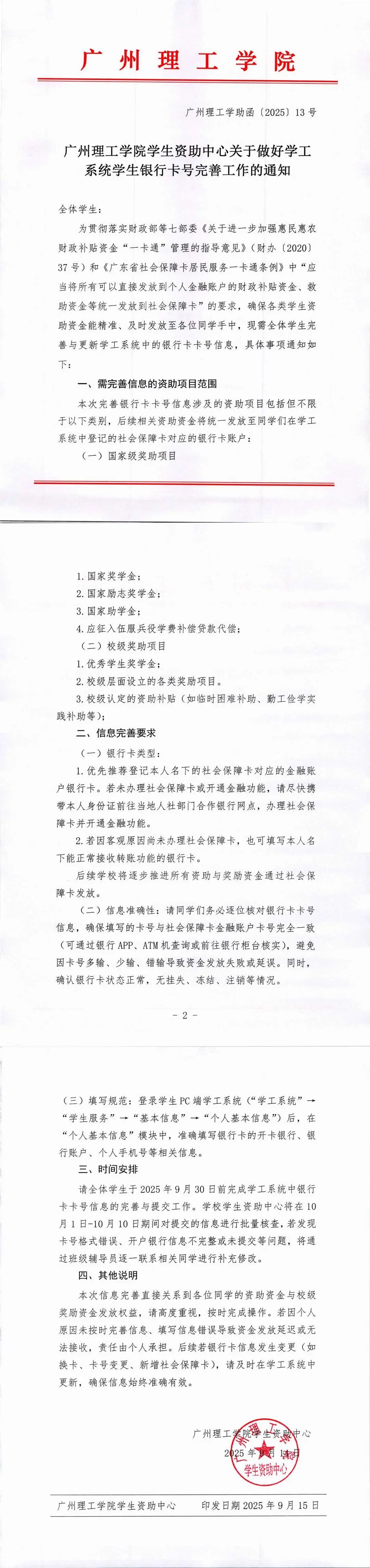 广州理工学院学生资助中心关于做好学工系统学生银行卡号完善工作的通知
