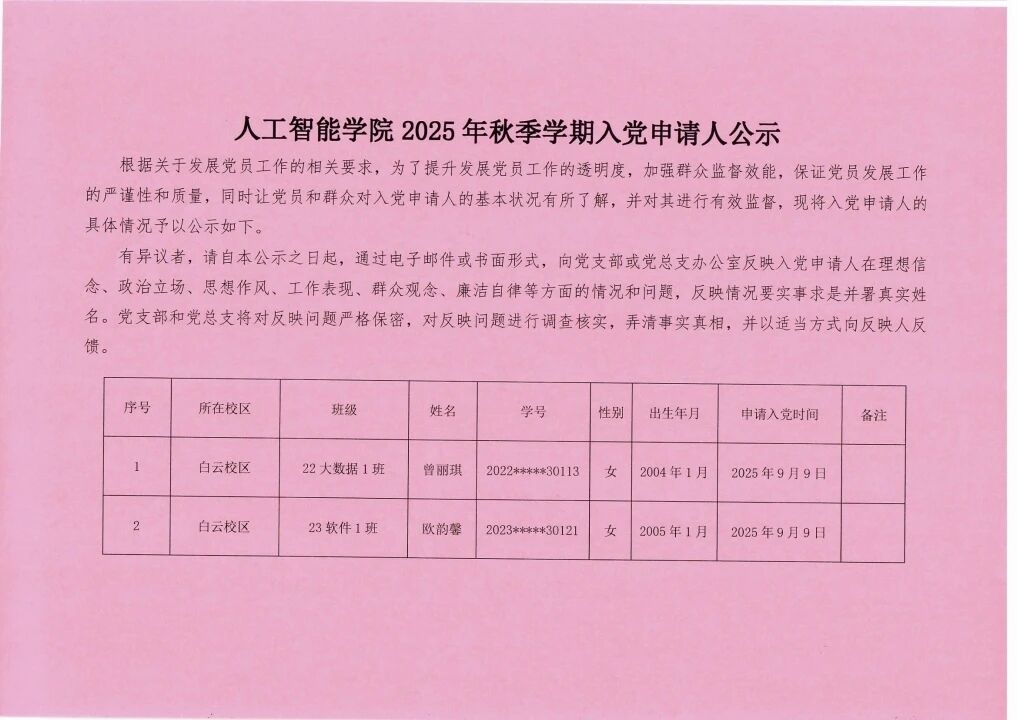 入党申请人名单公示