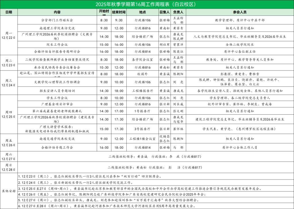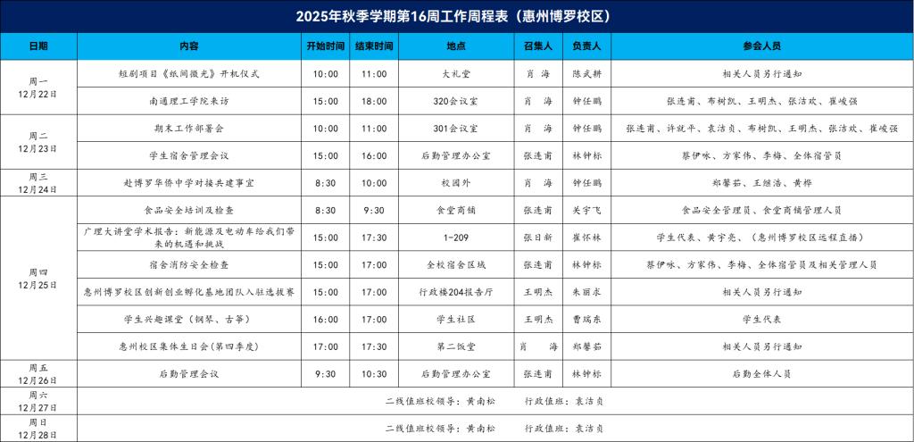 2025年秋季学期第16周工作周程表