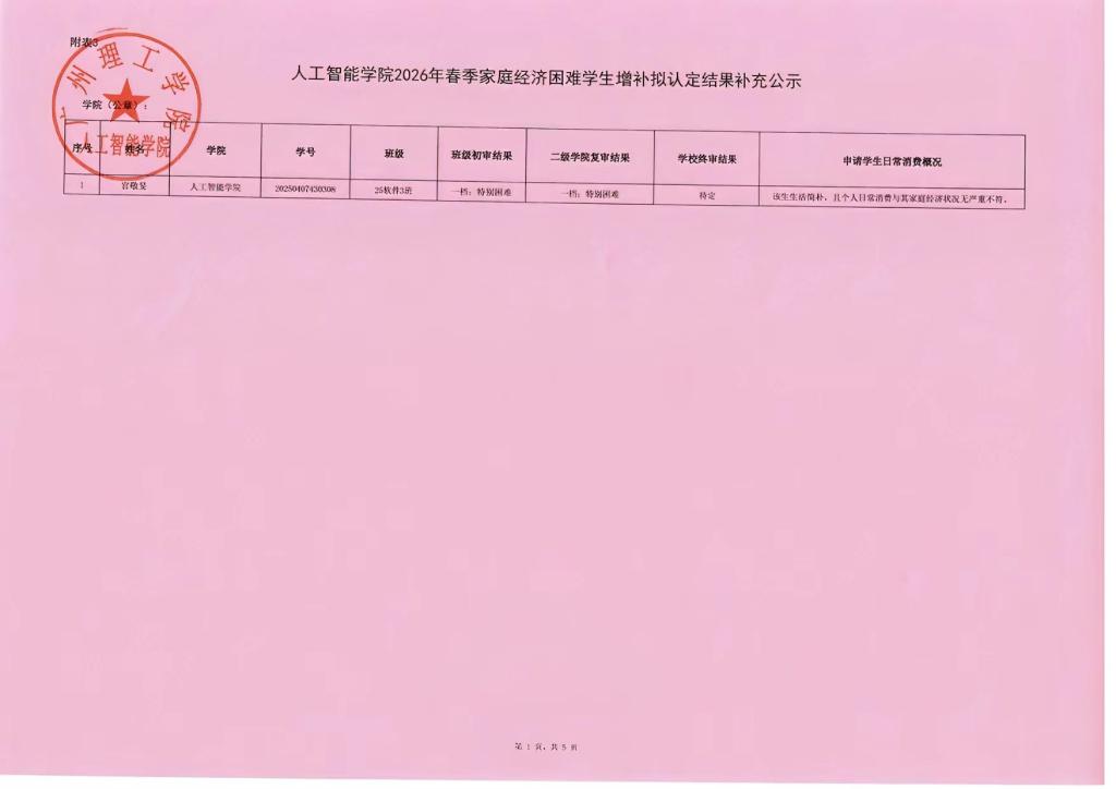 3.公示结束后,学院将报送学生资助中心再次审核确认,最终认定等级以学校结果为准。